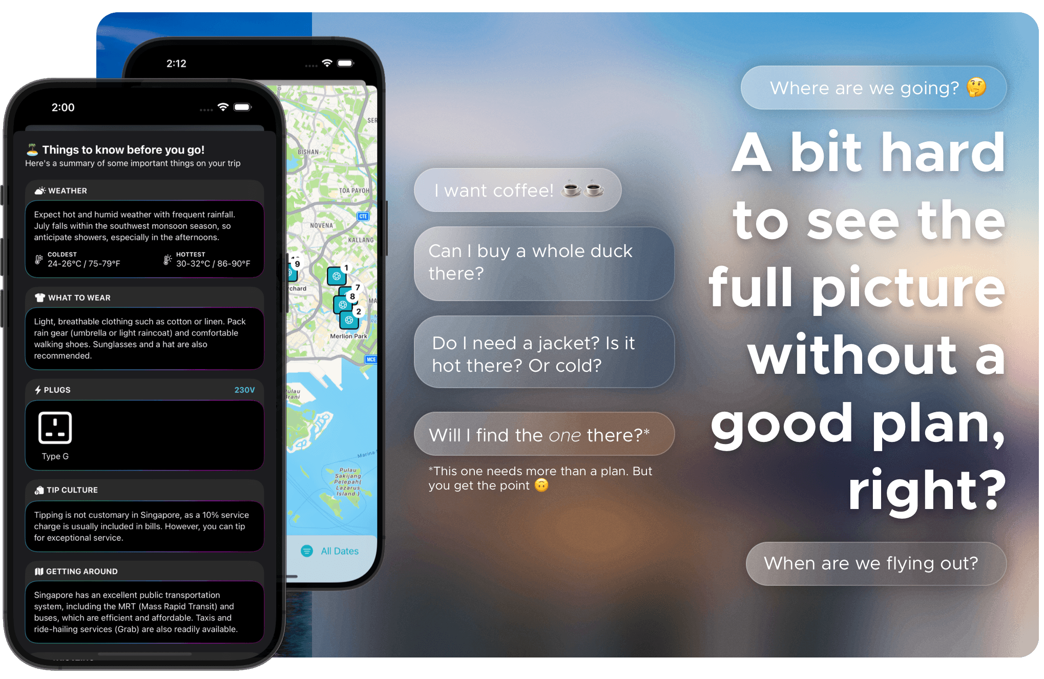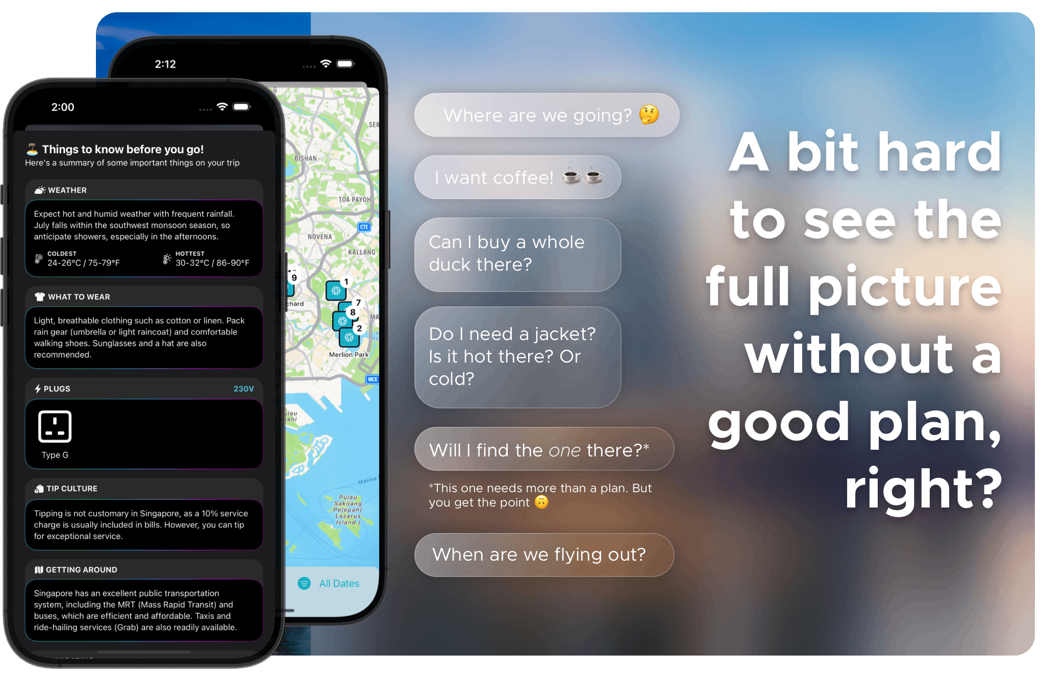 Elegantly Designed 🎨, Works-Without-Internet Itineraries 🌴, and an AI Travel Assistant ✨ at your fingertips. You'll certainly look forward to your next trip!